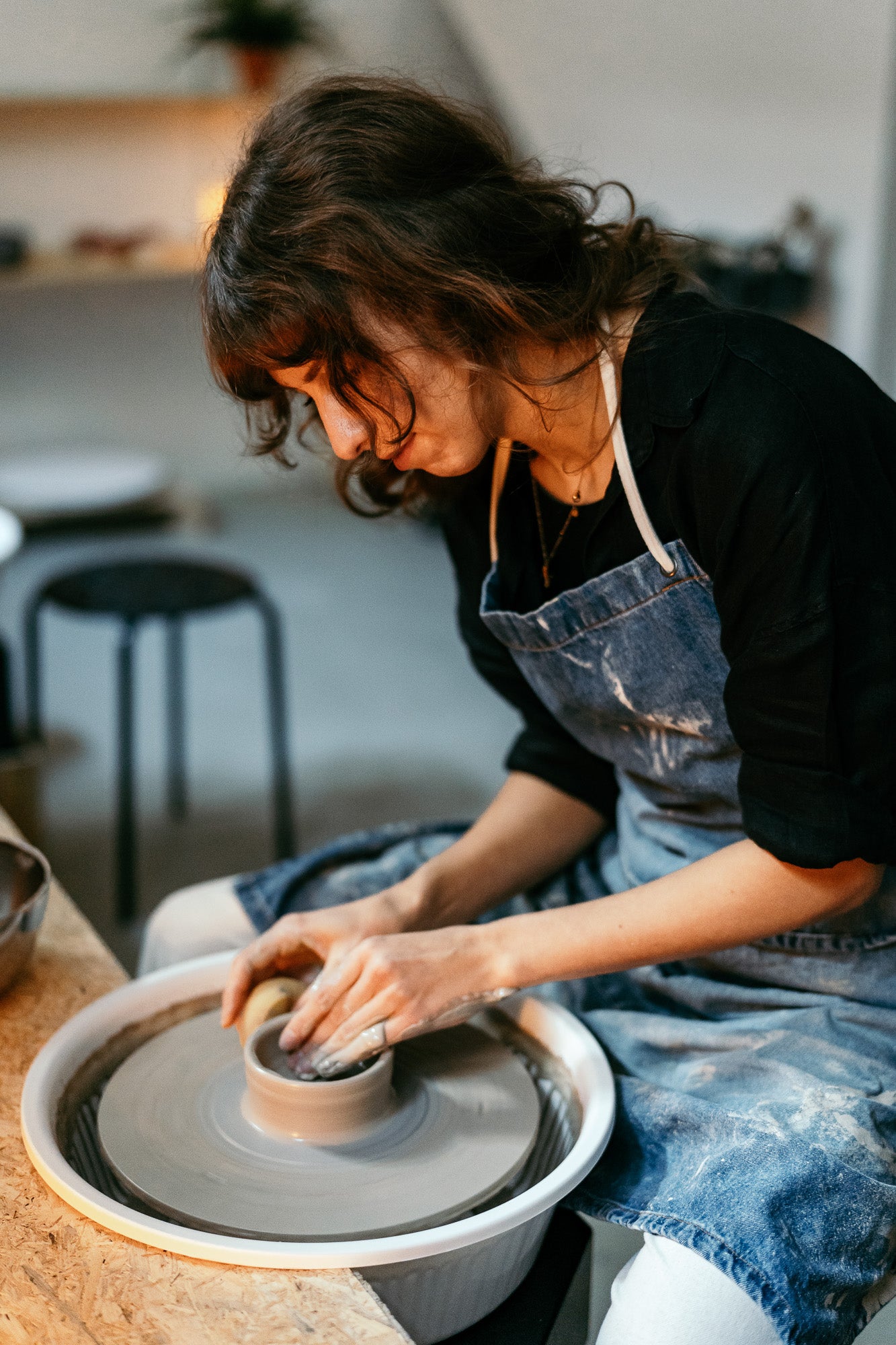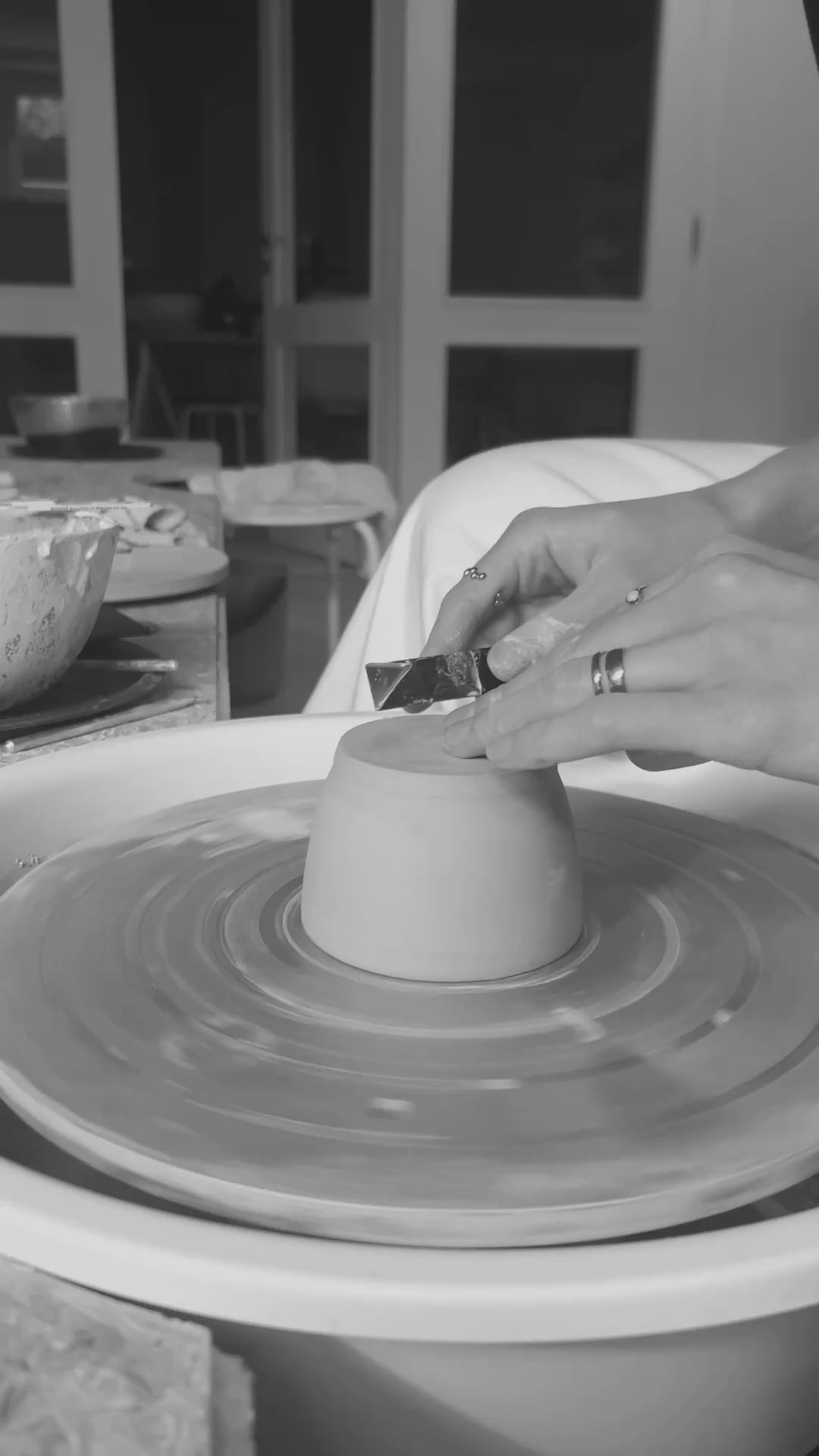 Was mich am Töpfern begeistert, ist, dass man sich unwillkürlich einer Sache hingibt, die einen zur Ruhe bringt und die Gedanken ziehen lässt. An der Drehscheibe die innere Mitte finden, bekommt hier eine zweideutige Bedeutung. Ich wollte einen kreativen Raum haben, der Platz bietet, Dinge zu erschaffen, aber auch Entspannung und Wohlbefinden mit sich bringt.